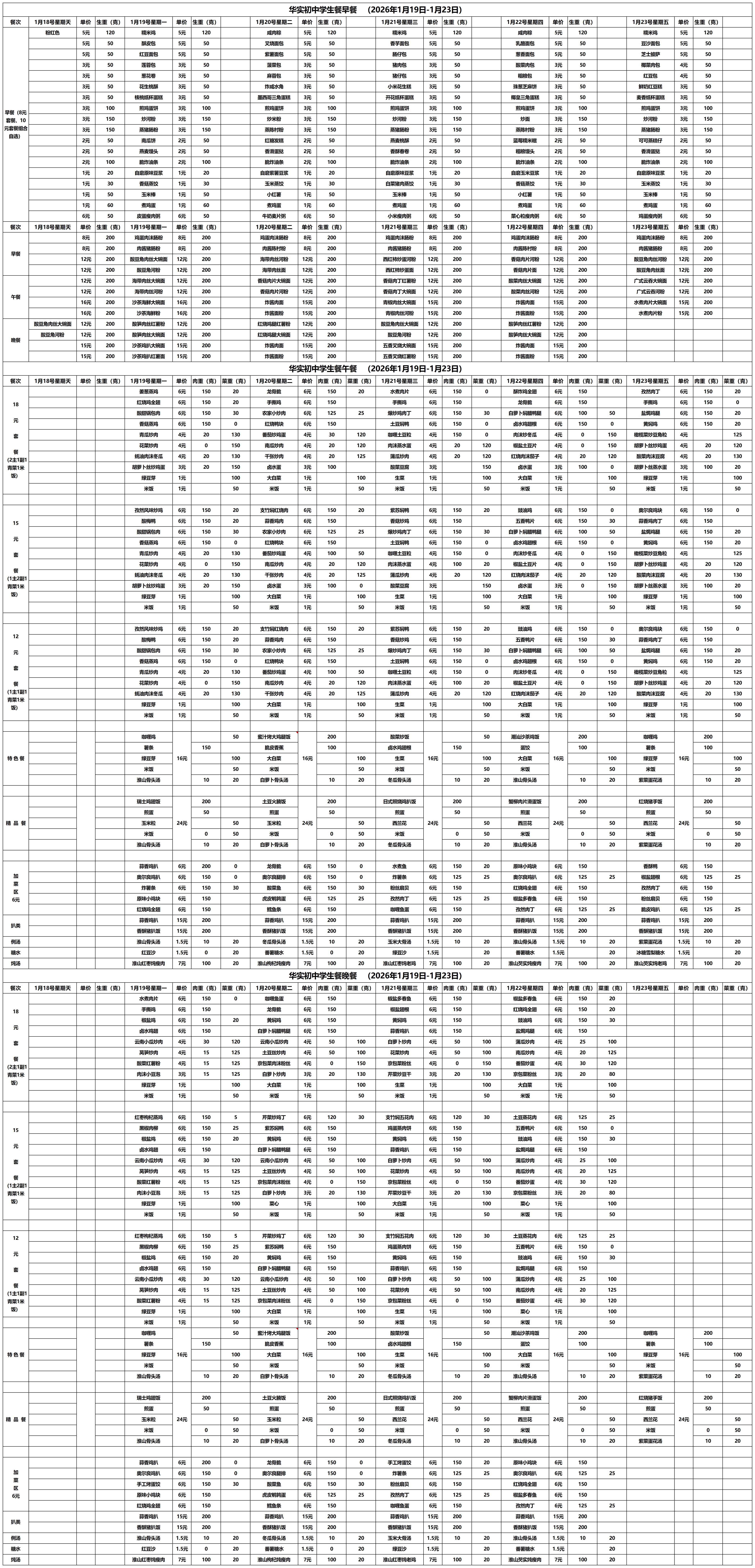 2025--2026学年第一学期第21周学生餐厅菜单