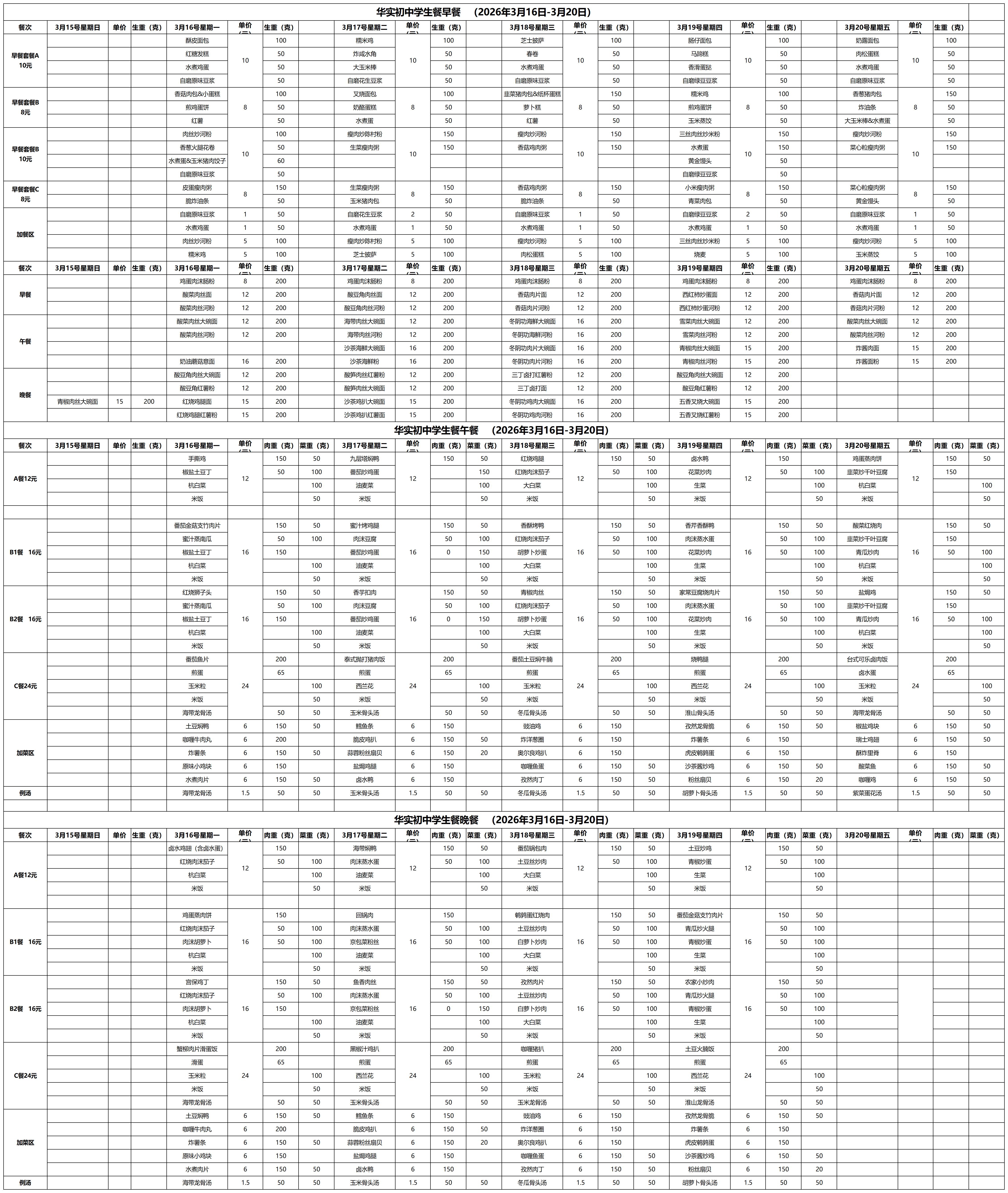 2025--2026学年第二学期第3周学生餐厅菜单