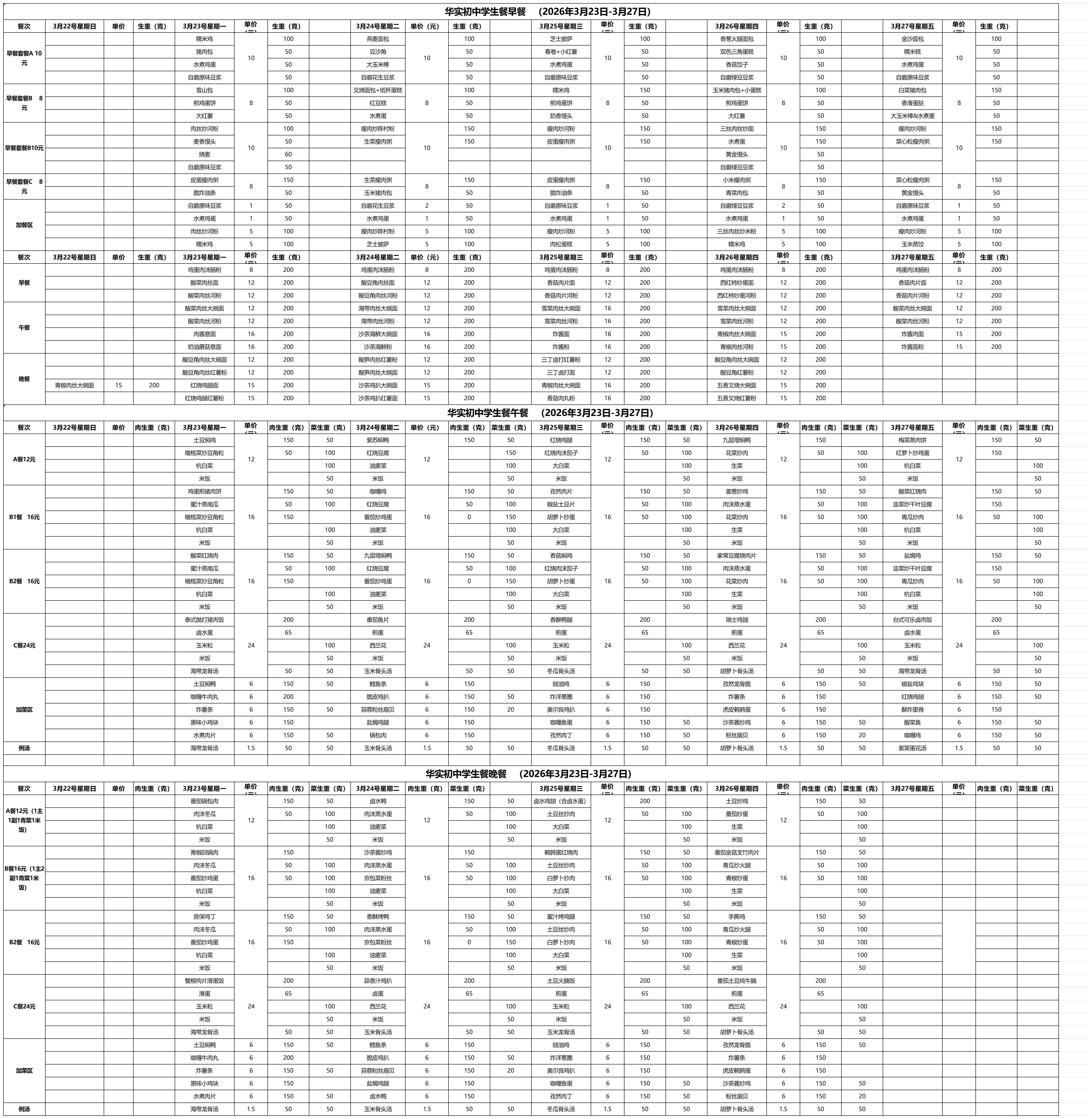 2025--2026学年第二学期第4周学生餐厅菜单