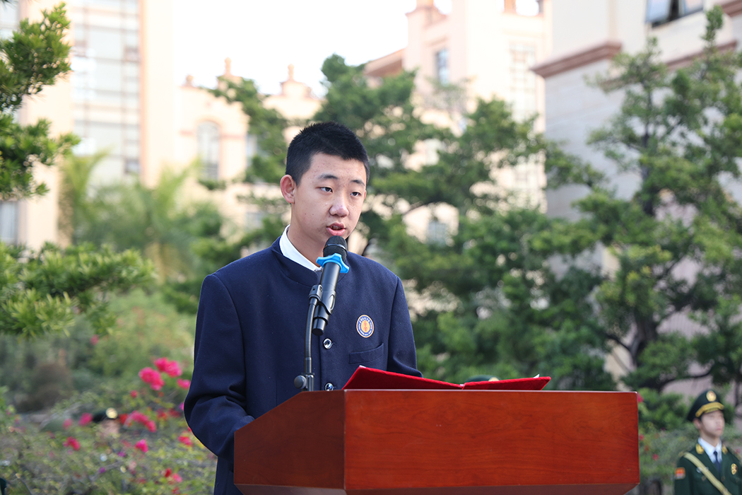 讲话最后,王墨轩同学号召全体师生牢记古训,在勤学中锤炼本领,在节俭中修养心性,为校园增光、为家国蓄力。