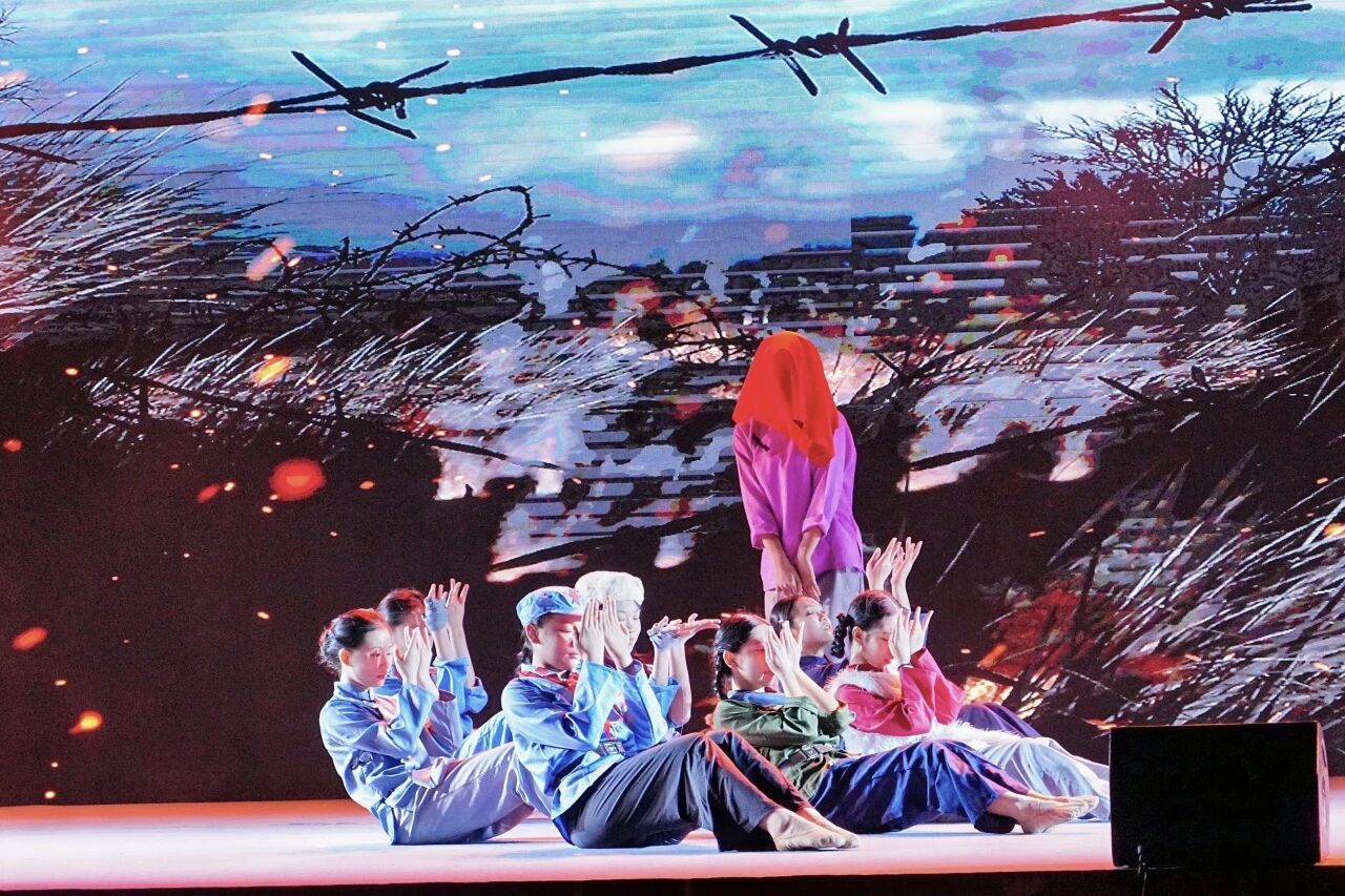校舞蹈队的舞蹈《永不沉没的丰碑》,用七位舞者与一个“空白”的舞台语言,为我们诠释何为“牺牲与永生”,赞颂这永不磨灭的精神丰碑。