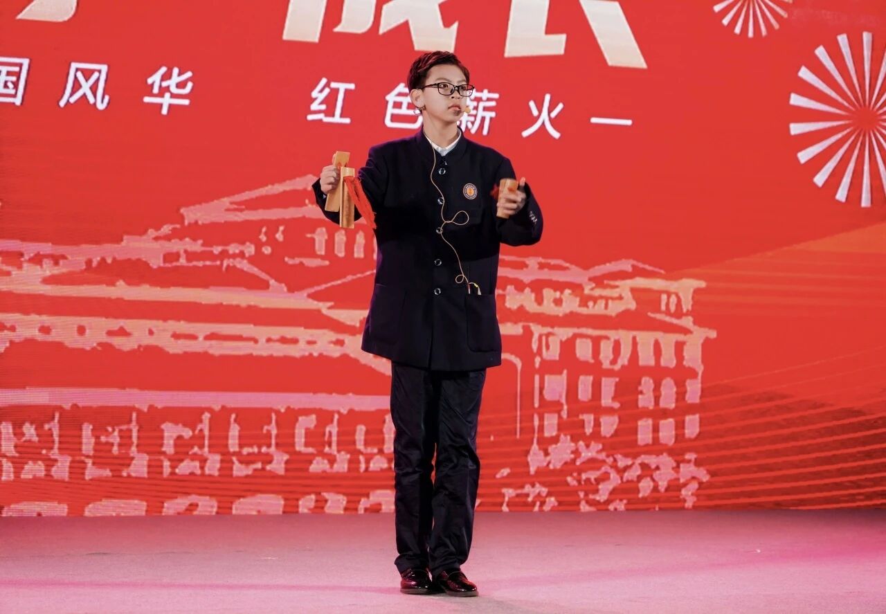 七(2)班、七(3)班、七(4)班联袂呈现的《少年中国说》,将舞蹈、武术与快板激情碰撞,展现出华初学子的蓬勃朝气与家国担当。