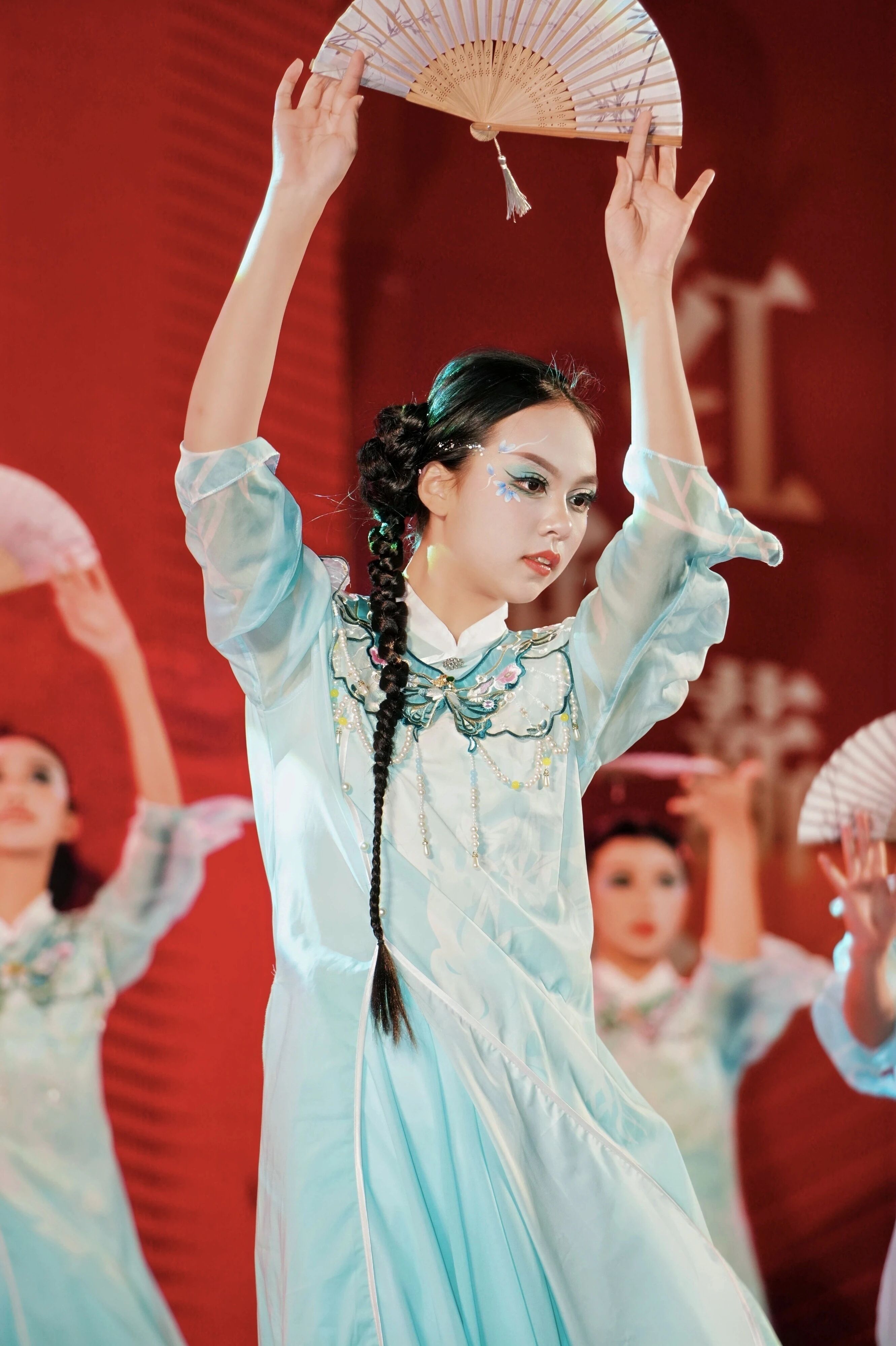 七(1)班的舞蹈《戏文说》,让古老戏文与青春舞步相遇,古典意蕴在肢体中流淌重生,尽显传统文化的魅力。