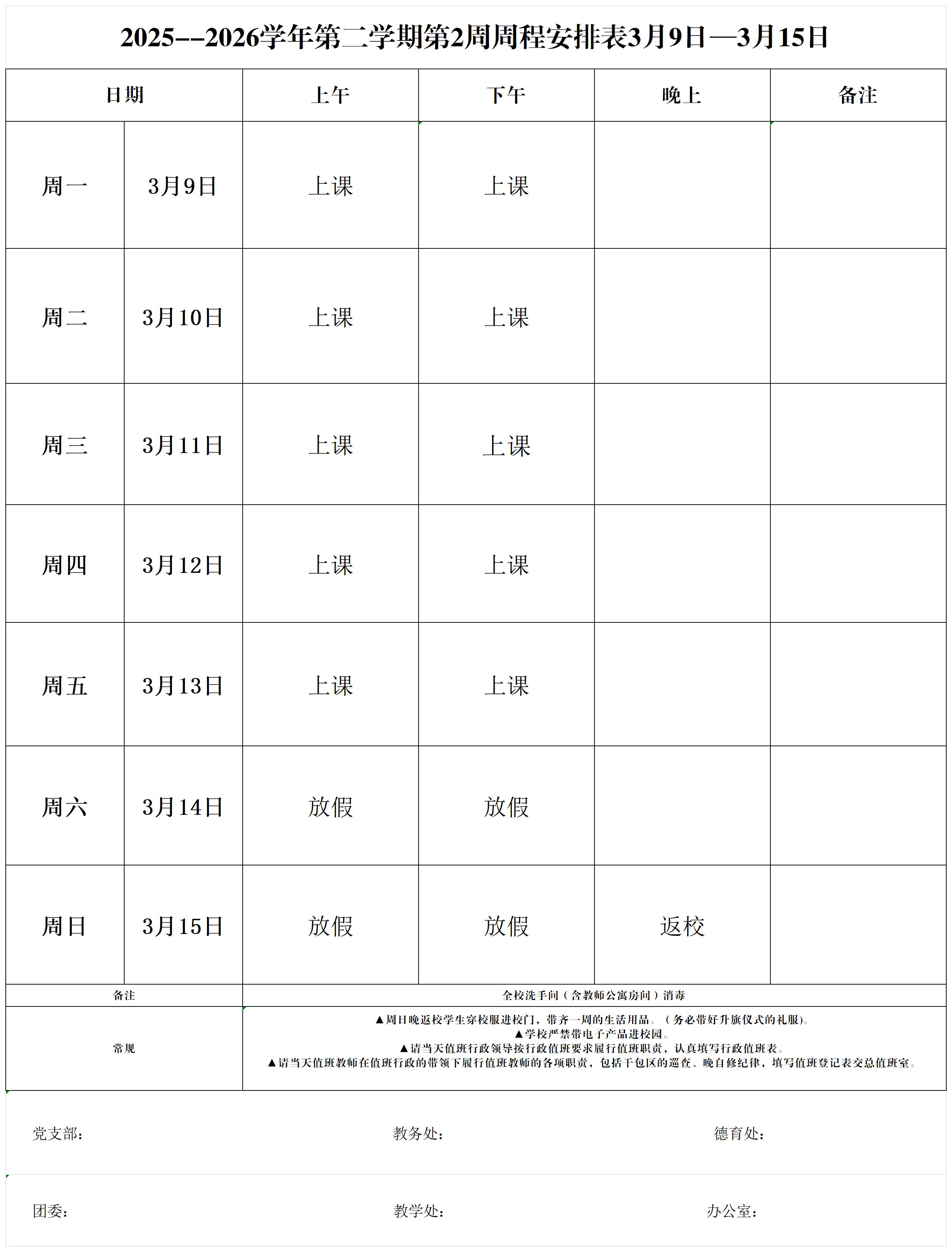 2025--2026学年第二学期第2周周程安排表